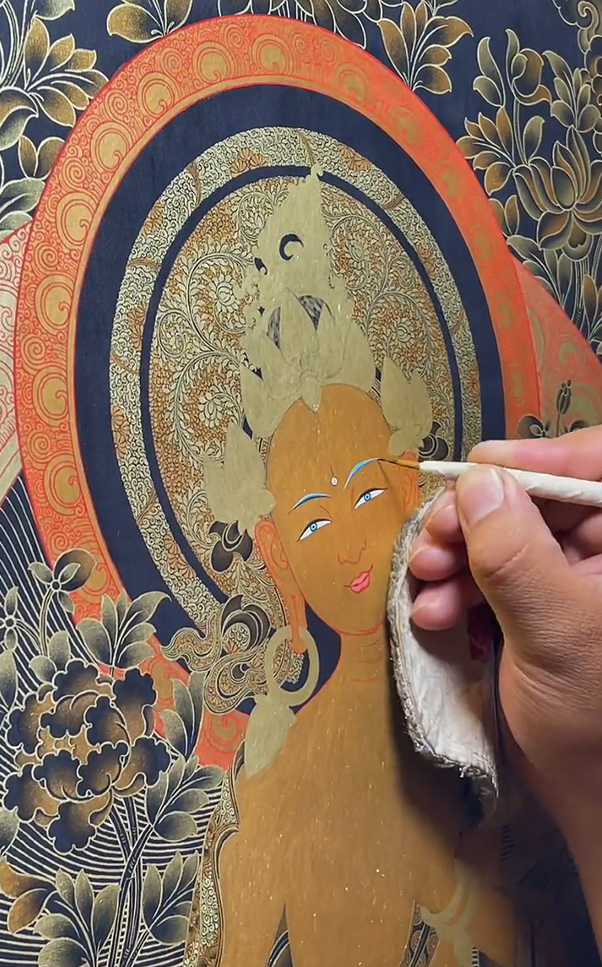 2–6 months of meticulous work, using lapis lazuli, cinnabar, and 24K gold with sacred geometry.