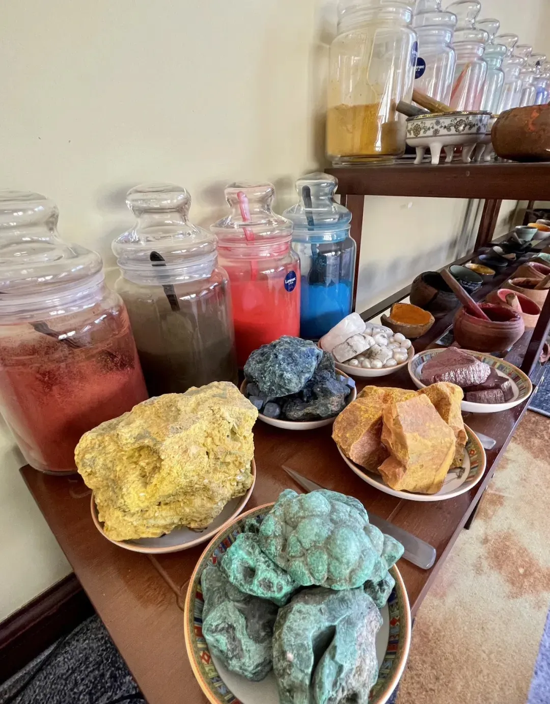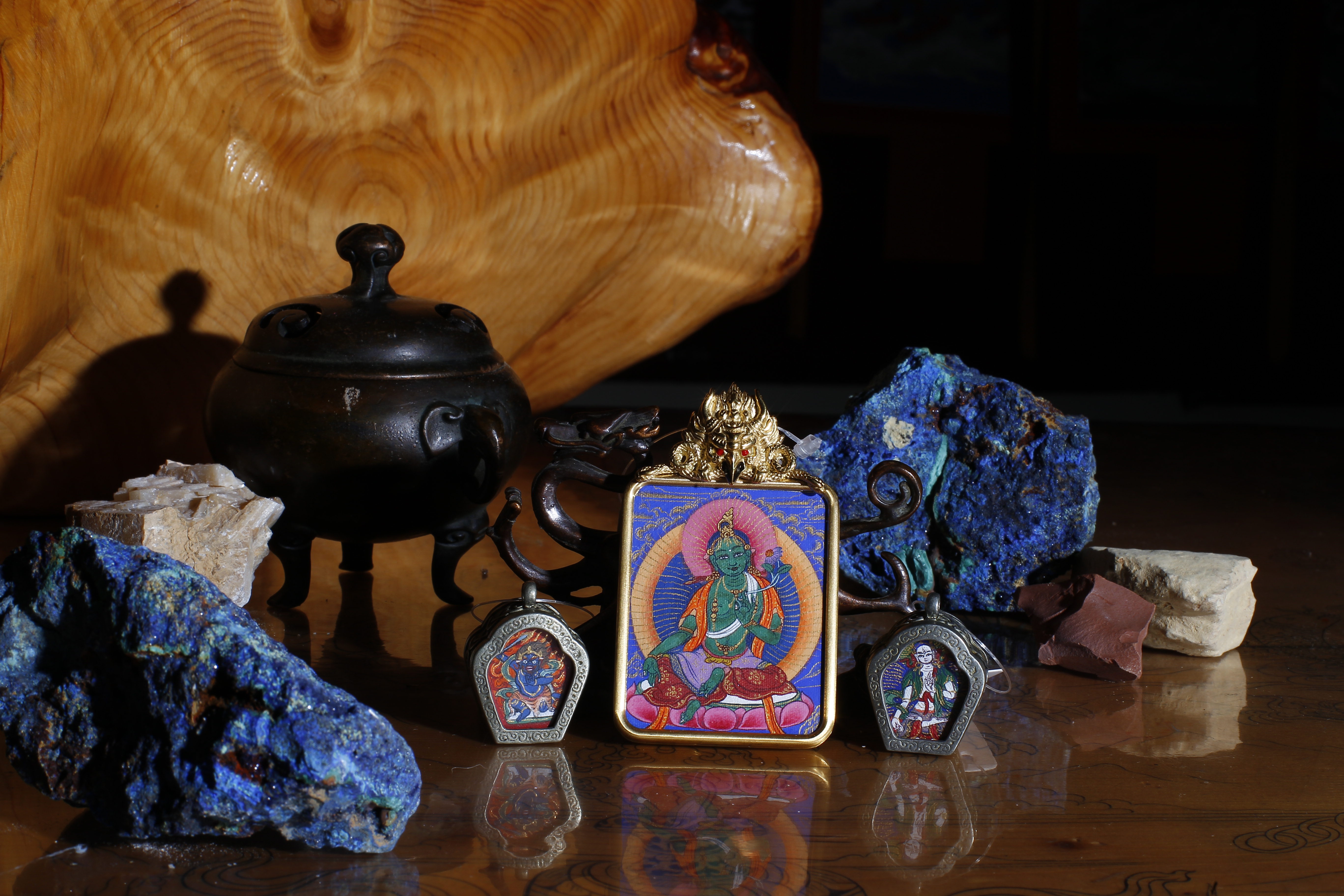 The colors used in painting Thangkas are derived from natural minerals or plants: